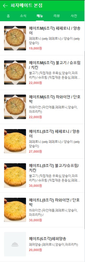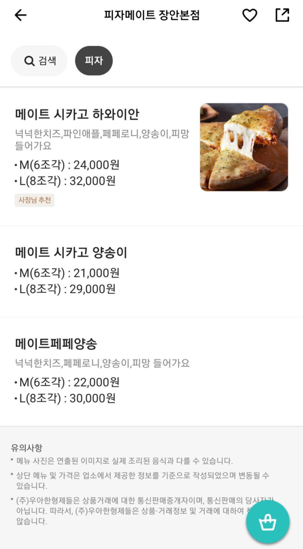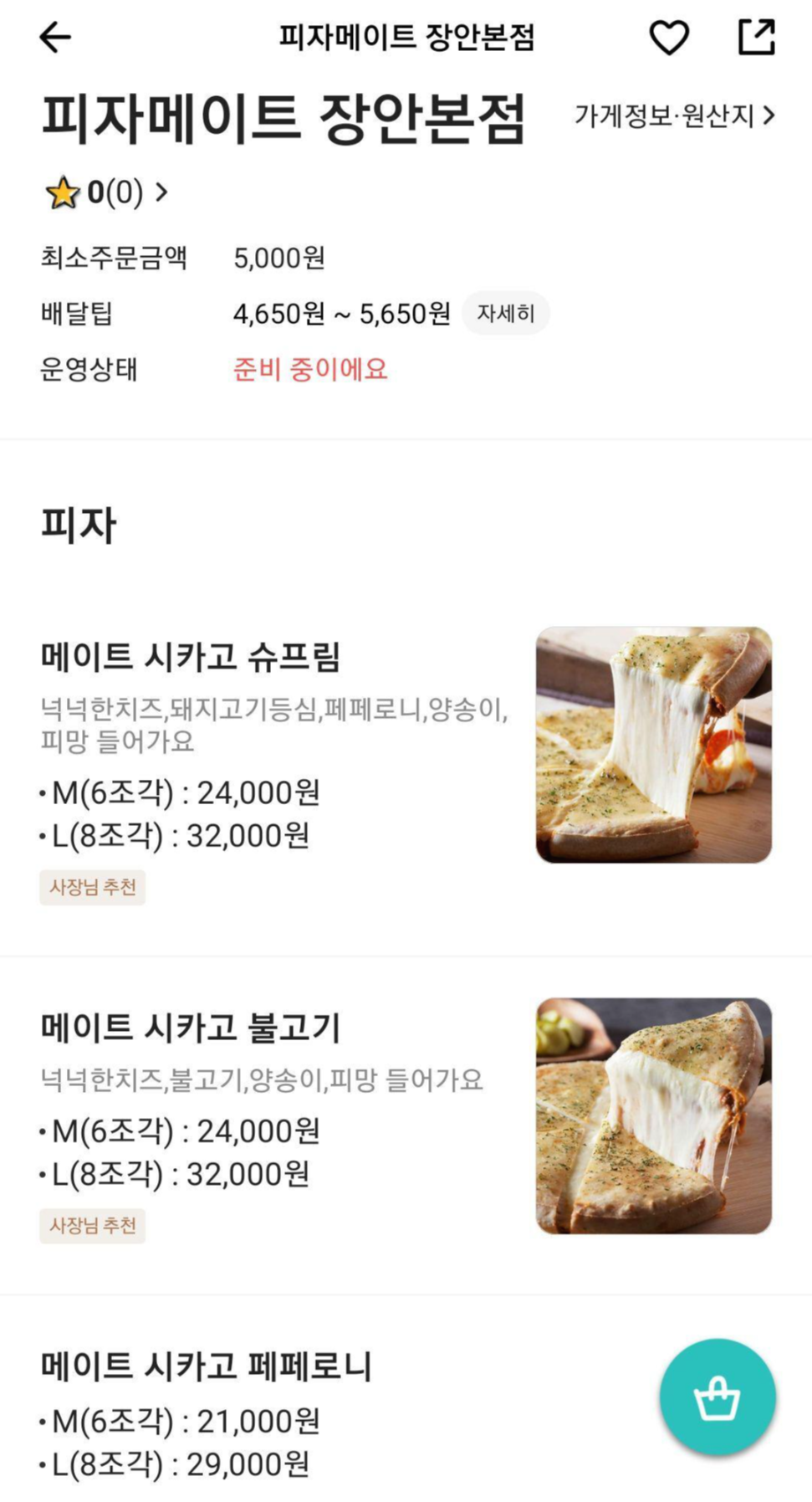 그리고 예전에 배달을 종료해서 그런지, 없는 메뉴(메이트 시카고 치킨, 메이트 시카고 단호박)도 보입니다.
