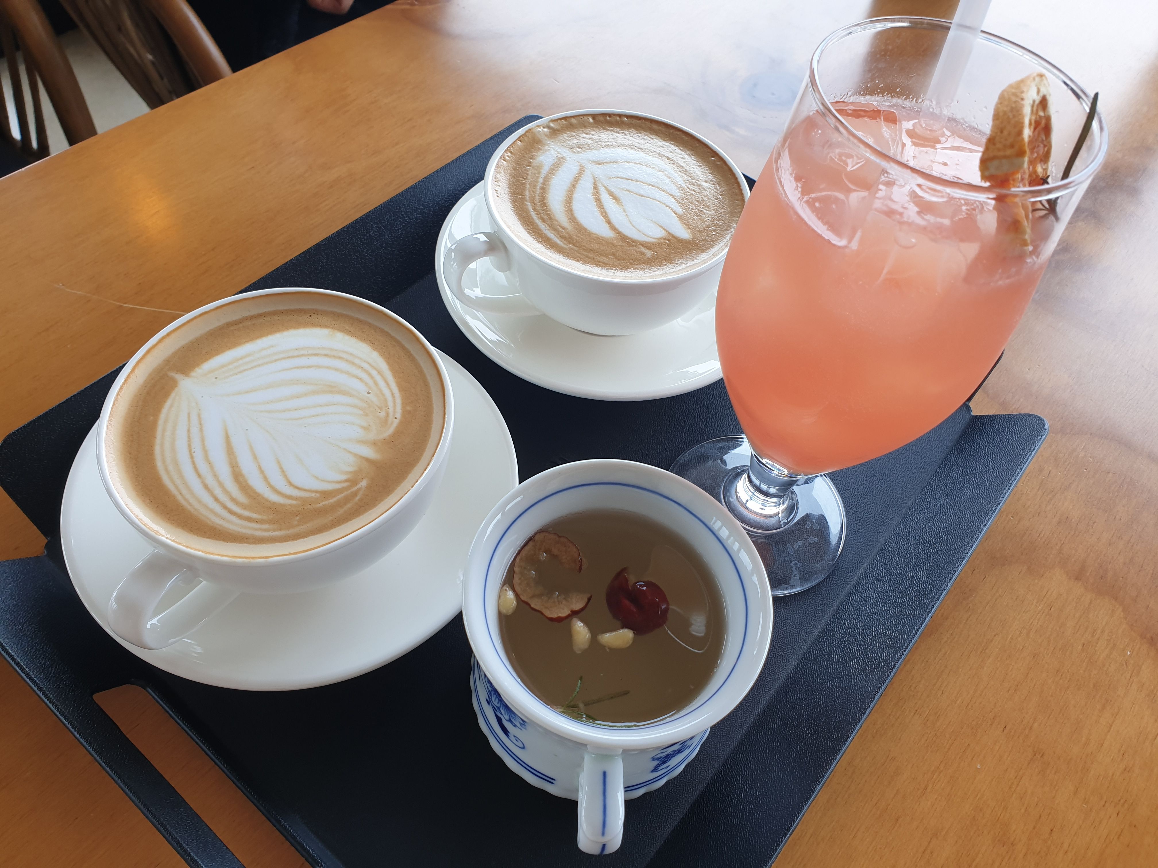 카페라테, 솔잎차, 자몽에이드를 주문했었어요