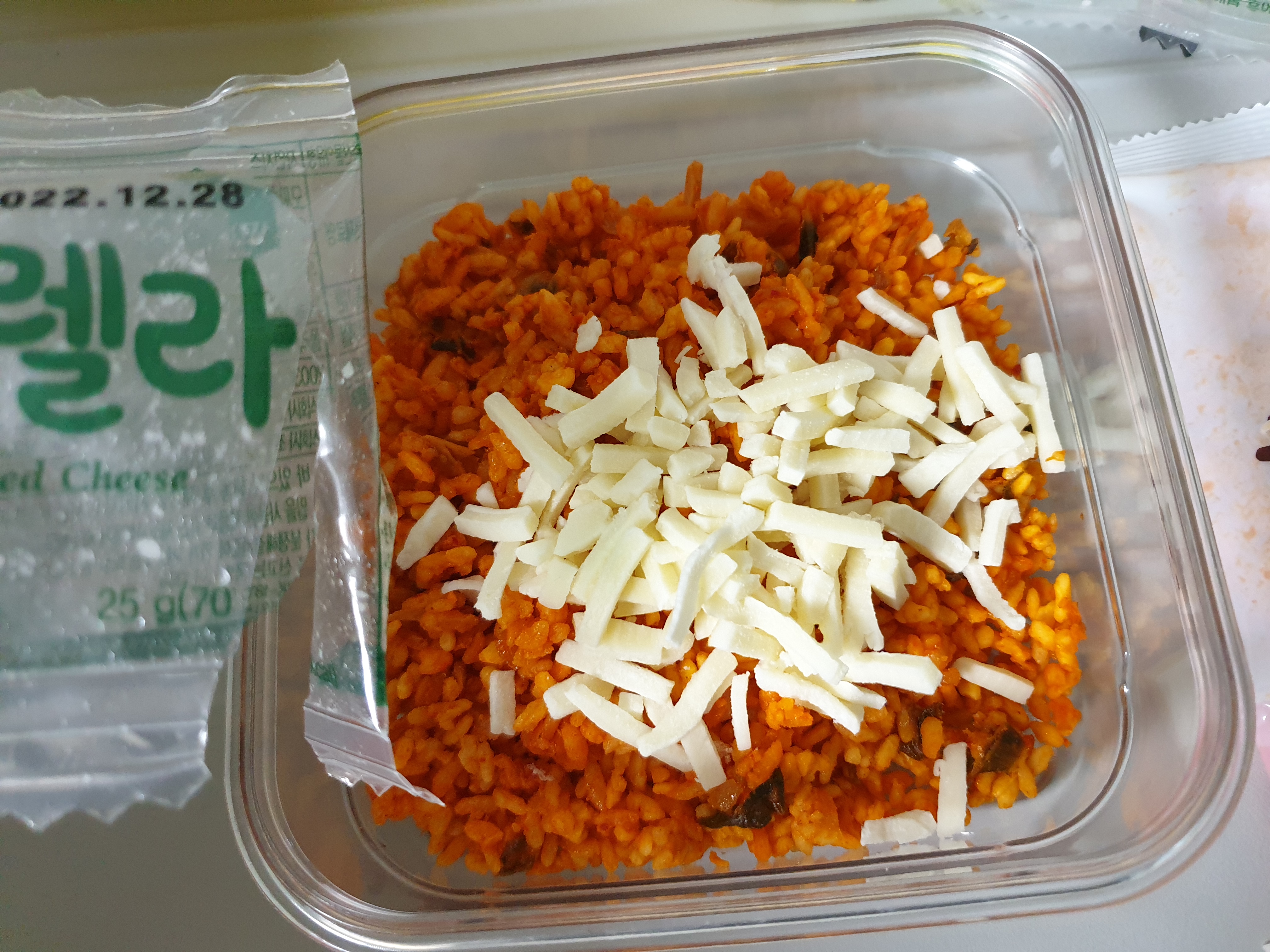 그리고 치즈도 치즛치즛 뿌려준다. 치즈가 정말 각지게 생겼다.