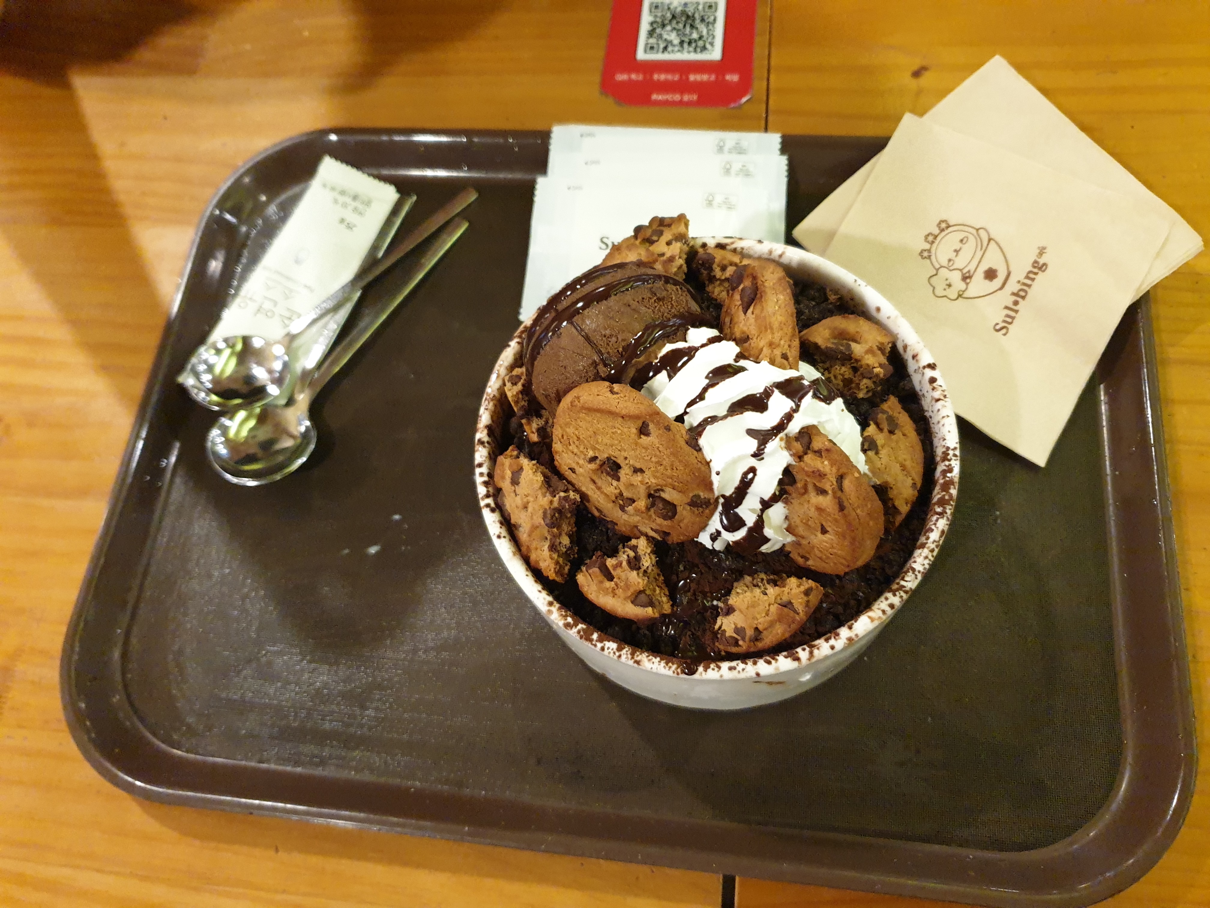 일단, 엄청 달아요! 크림에 초콜릿 아이스크림에 칙촉, 그리고 얼음까지 합쳐서 먹으면 최고입니다.