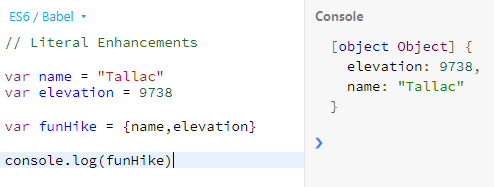 var funHike = {name,elevation}