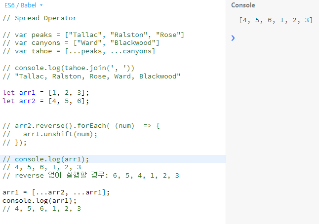 3. 스프레드 연산자와 reverse(), 구조 분해 함께 사용하기