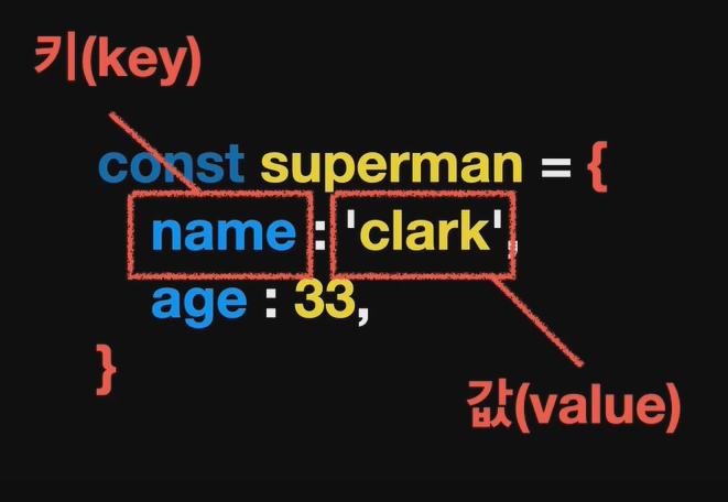 Superman인 이름이 clark이고 나이가 33인 인물을 객체로 표현해보자