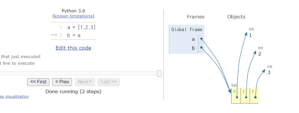 그러면 Next 혹은 Last를 누르면 다음과 같이 내가 입력한 코드가 그림으로 나오게 된다. 공부할 때 매우 유용할 것이다.