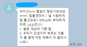 이때 할 일 하느라 오전 3시 25분에도 둘 다 안 자고 있는 상황이었다. 그런데 갑자기 책 2권 중 하나를 고르라고 해서 슬픈 세상의 기쁜 말을 골랐다. 내가 지금 살고 있는 세상이 슬프다고 느끼고 있었는데, 그중 기쁜 말이 있다는 이야기에 제목만 보고 골랐다. 사실 책을 보기 전까지는 그냥 긍정적인 말들이 가득 담긴.. 그런 위로 에세이가 아닐까 지레짐작했다. 근데 막상 읽어보니 그 반대였다. '정말' 슬픈 세상에서 겨우 살아남기 위해 서로에게 건네고 나 자신에게 건네는.. 그런 기쁜 말이었다. 저자는 인생의 깨달음을 얻기 위해 남도의 외딴 항구의 어부를 무작정 찾아가기도 하고, 노인대학에서 뒤늦게 글자를 배우고 계신 할머니를 찾아가기도 하고, 또 시장의 야채장수 언니, 9ㆍ11 테러 생존자, 세월호 유가족, 콜럼바인 총기 사건 희생자를 만나게 된다.