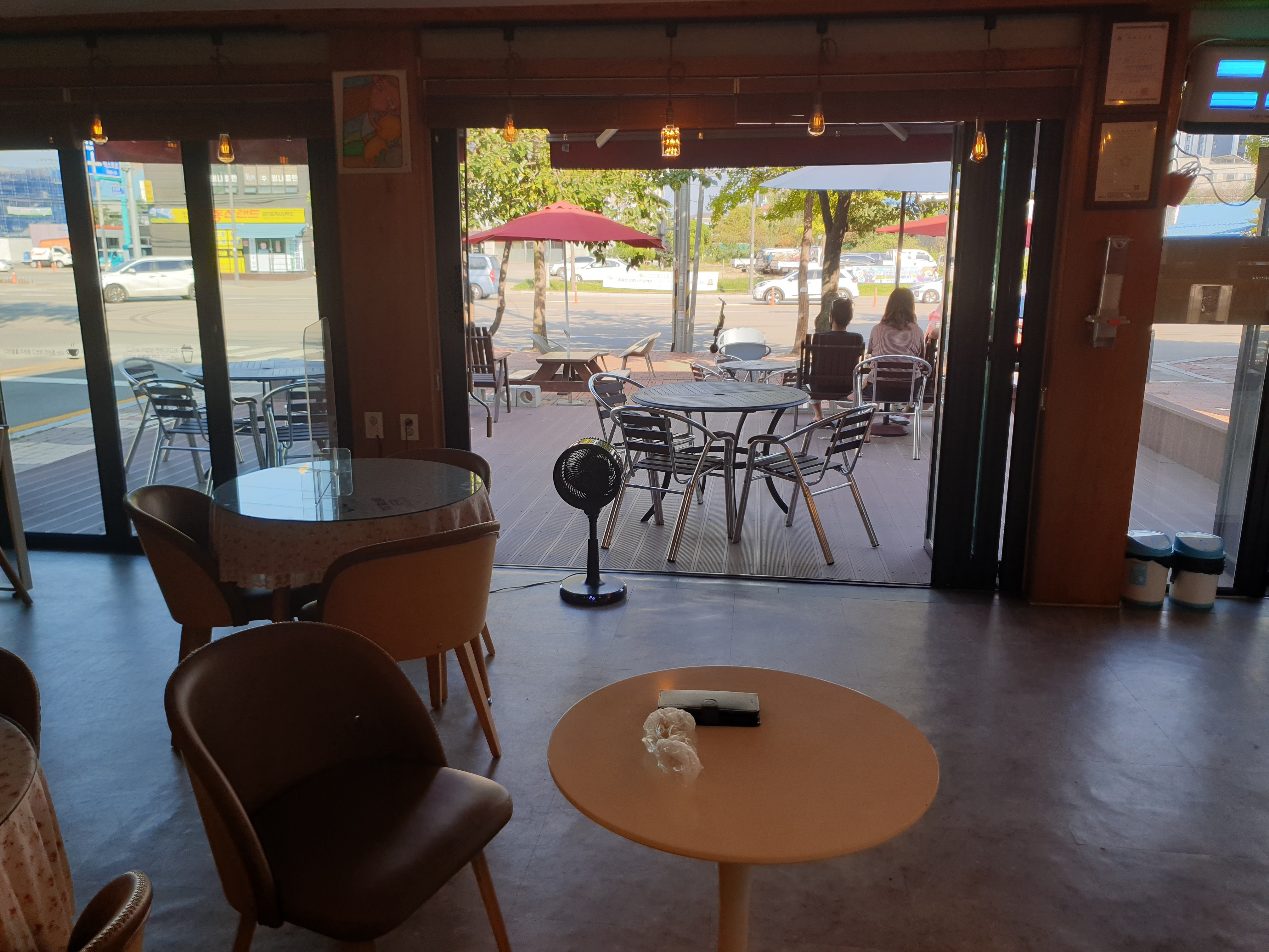 카페 속초에 살다 전경입니다! 보이는 것처럼 안에서도, 밖에서도 커피를 즐길 수 있어요.