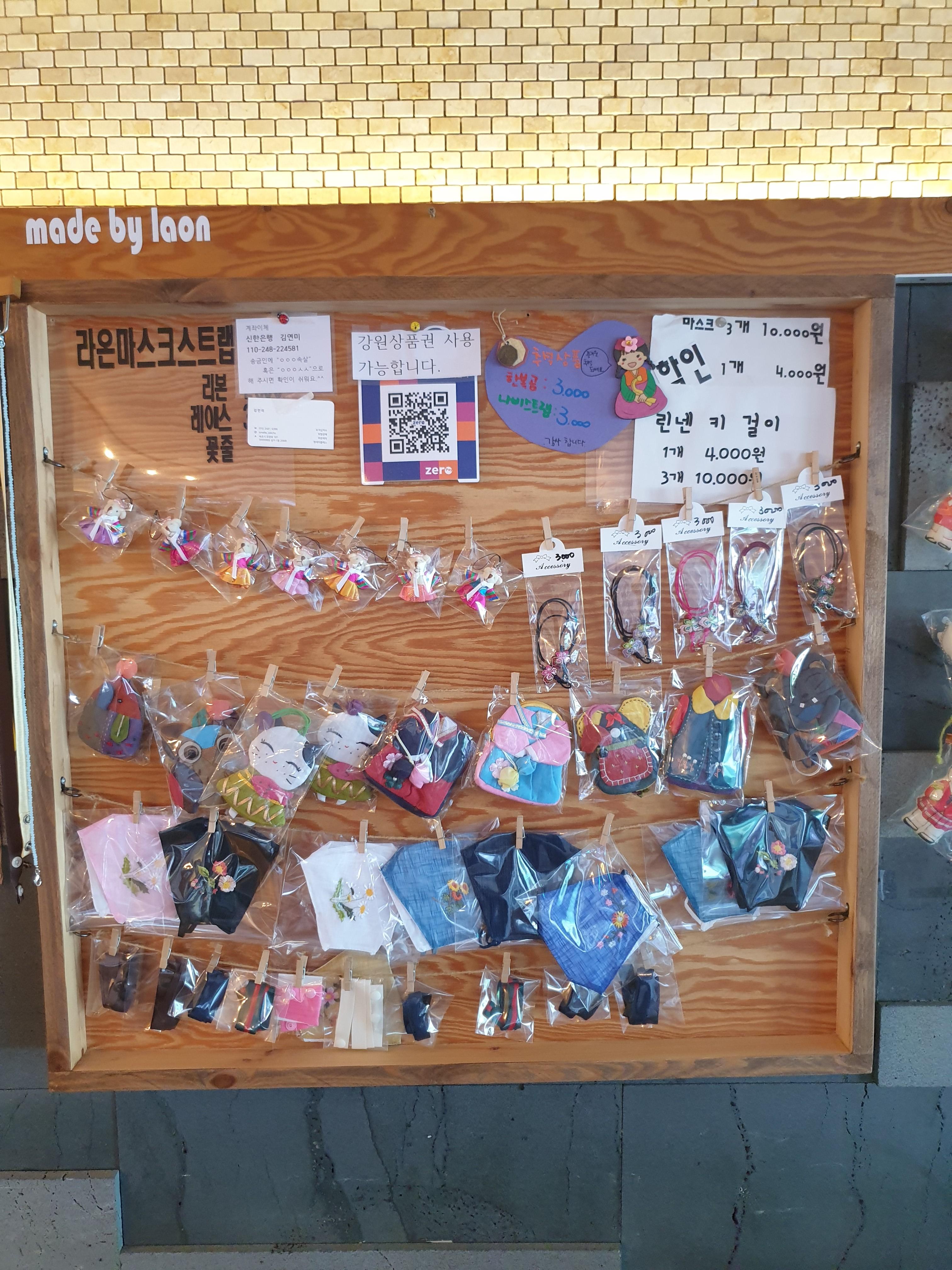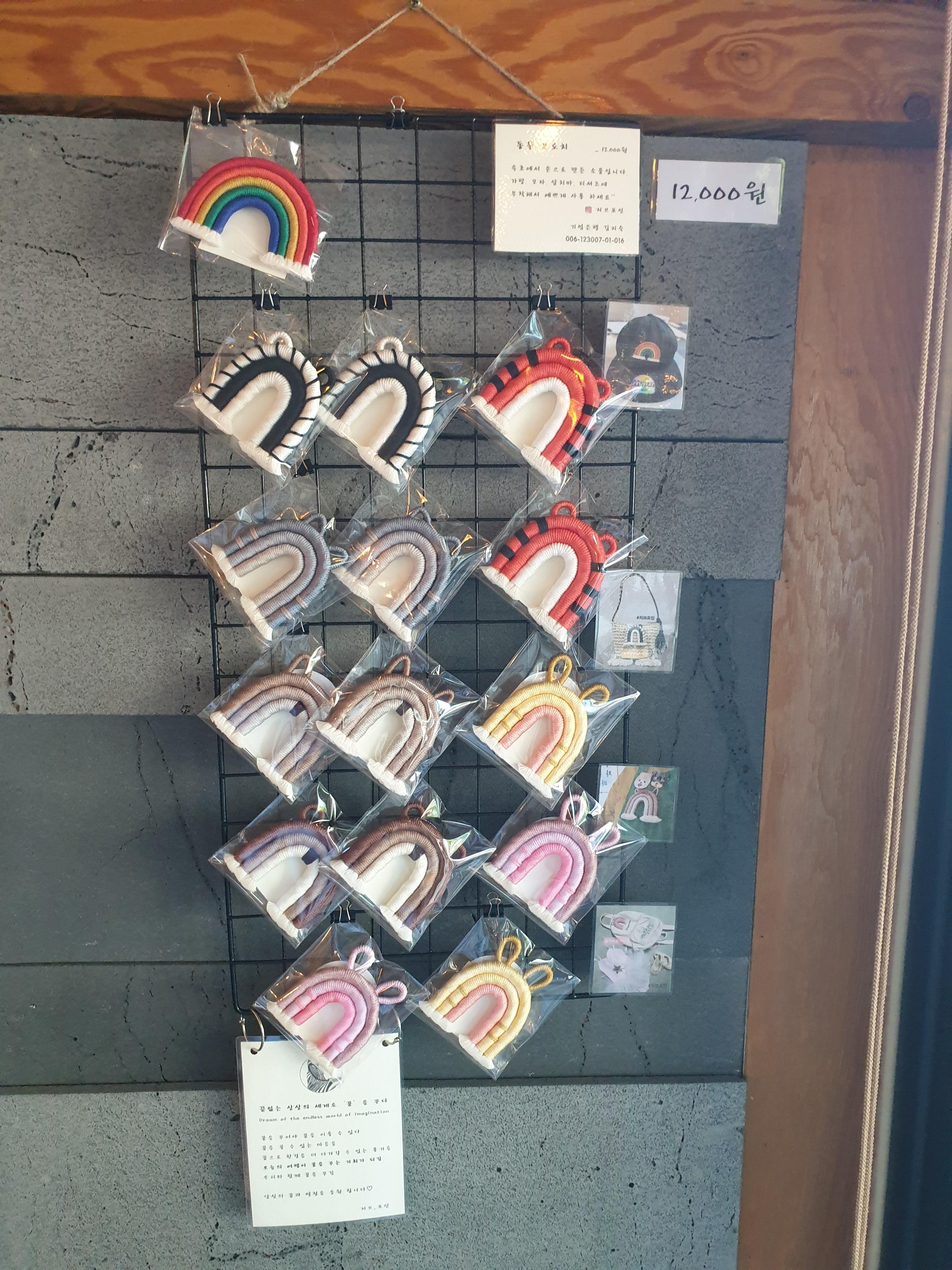 벽에 보면 핸드메이드 제품을 전시해놓으셨어요.