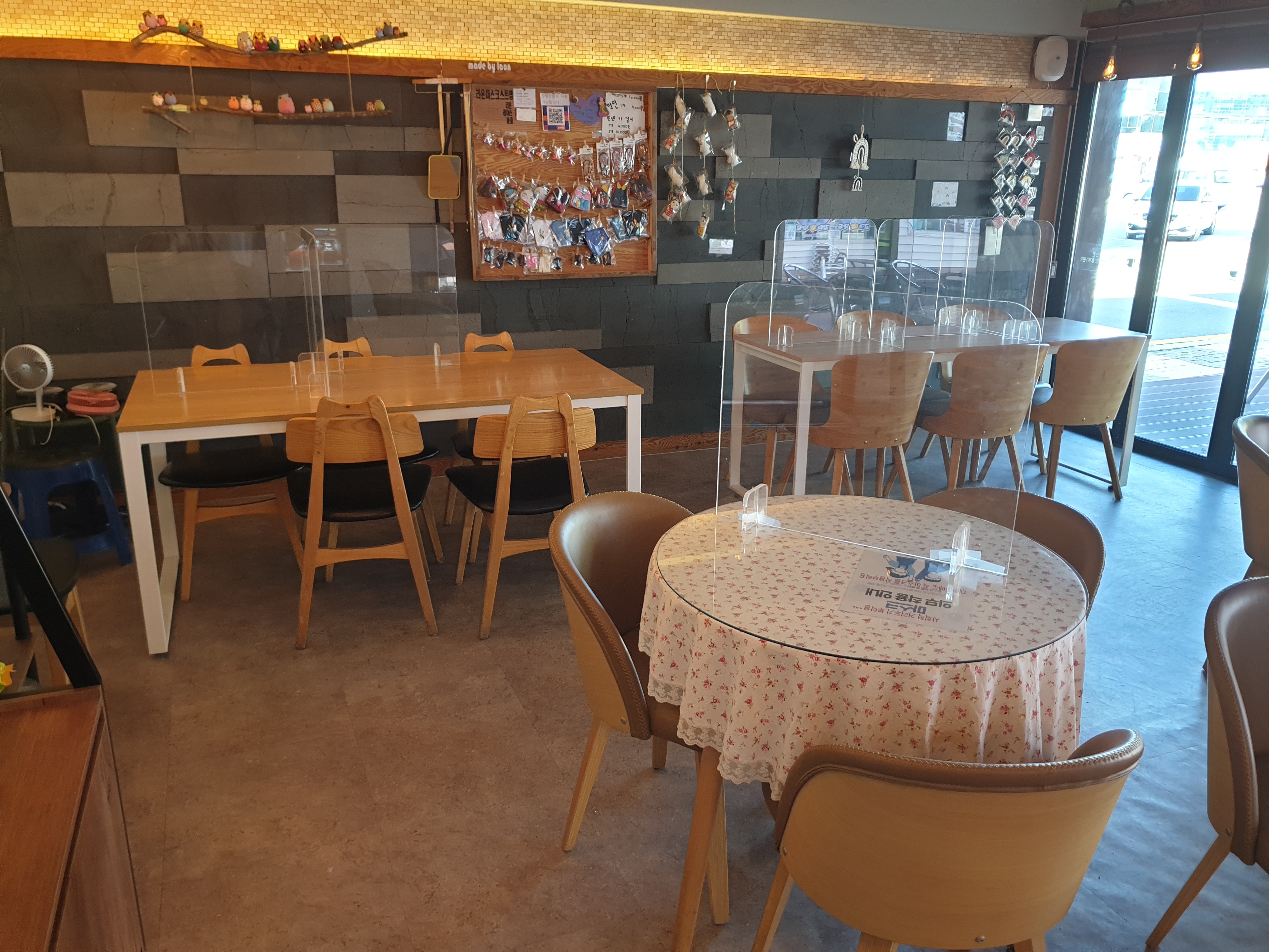 코로나19 때문에 가림막이 많이 설치되어있습니다.