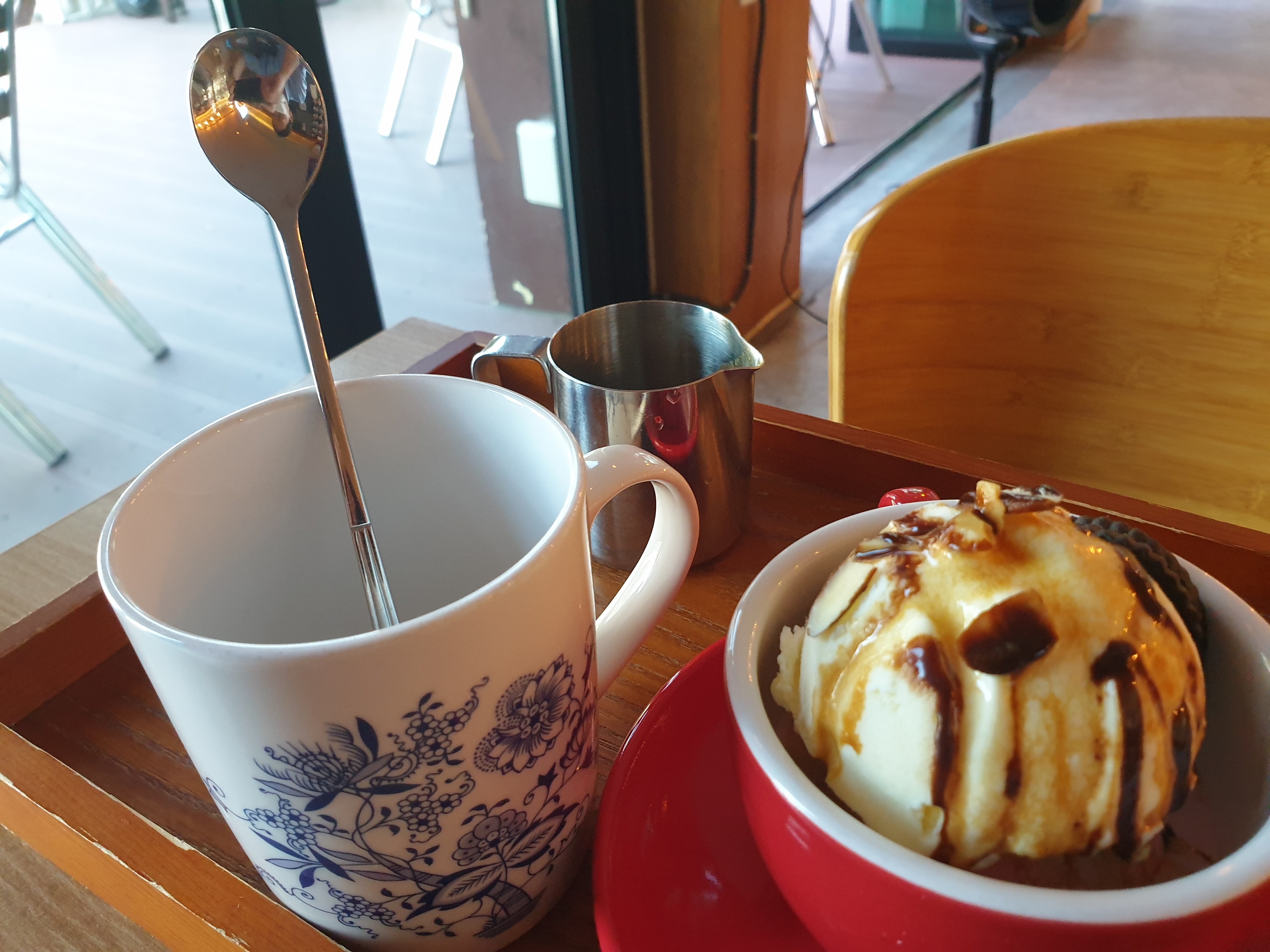 에스프레소를 위에 부어서 맛있게 먹었어요 :)